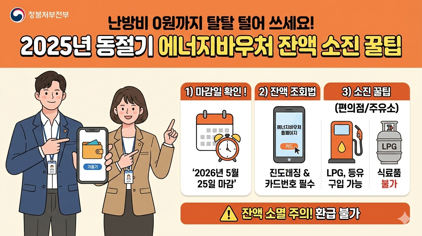 특히 "남은 돈은 나중에 현금으로 주겠지?"라고 생각하다가 아까운 지원금을 전액 날리는 경우가 매년 발생합니다. 오늘은 2026년 1월 현재 사용 중인 '2025년 동절기 에너지바우처'의 정확한 마감 기한과 잔액 조회법, 그리고 10원 단위까지 알뜰하게 쓰는 방법을 정리해 드립니다.