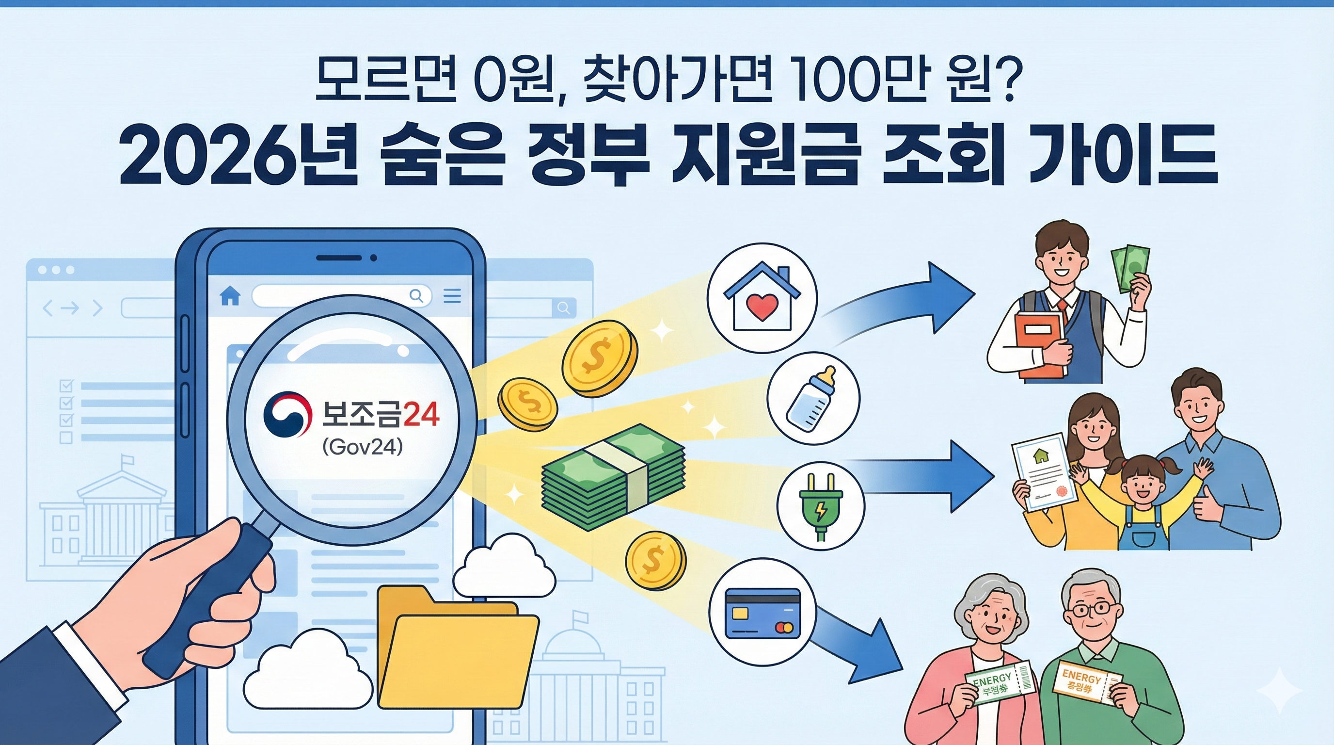 2026년 새해를 맞아 내 지갑을 든든하게 채워줄 '숨은 정부 지원금'을 클릭 몇 번으로 한 번에 찾아내고 신청까지 끝내는 실전 가이드를 준비했습니다. 지금 바로 확인해 보세요!