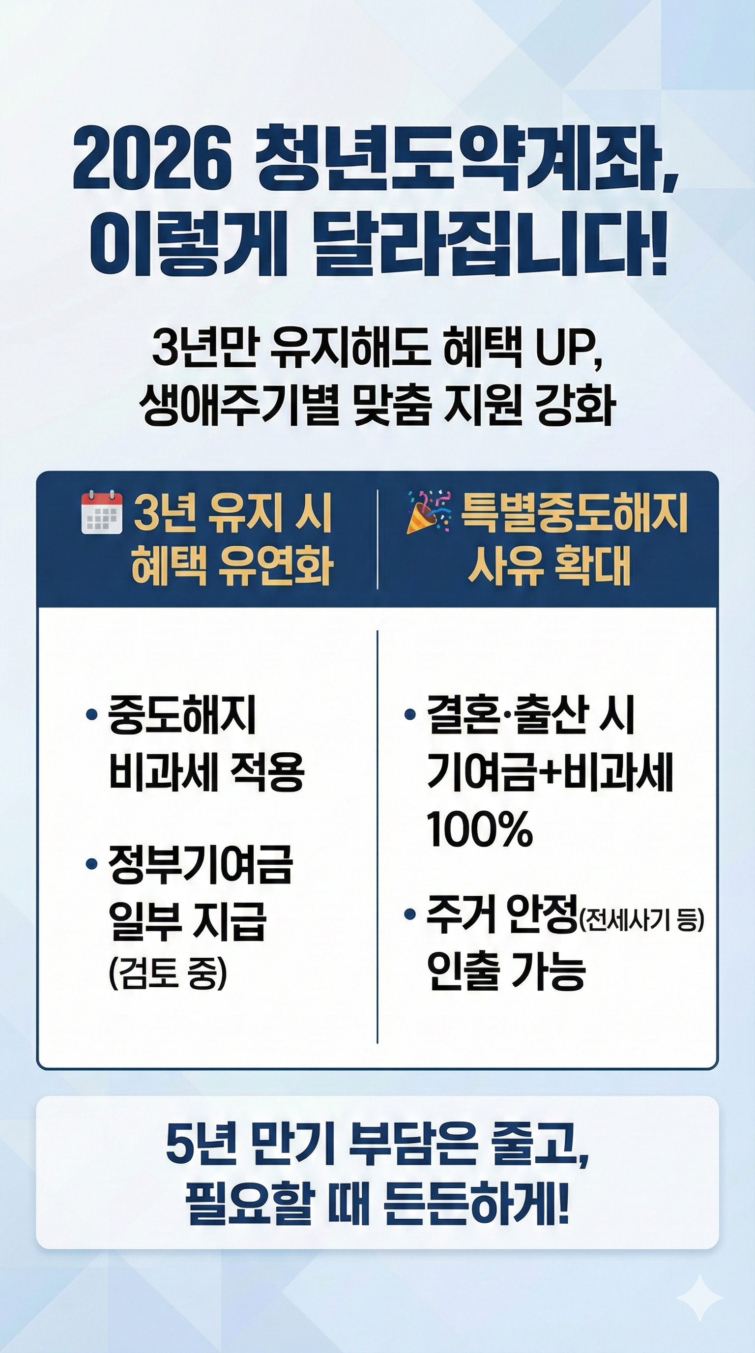 아마 많은 분이 "5년 만기는 너무 길어서 중도 해지할까?"를 수십 번 고민하셨을 겁니다. 하지만 2026년부터는 이야기가 달라집니다. 정부가 약속한 '3년 유지 인센티브'가 발동되기 때문입니다.
