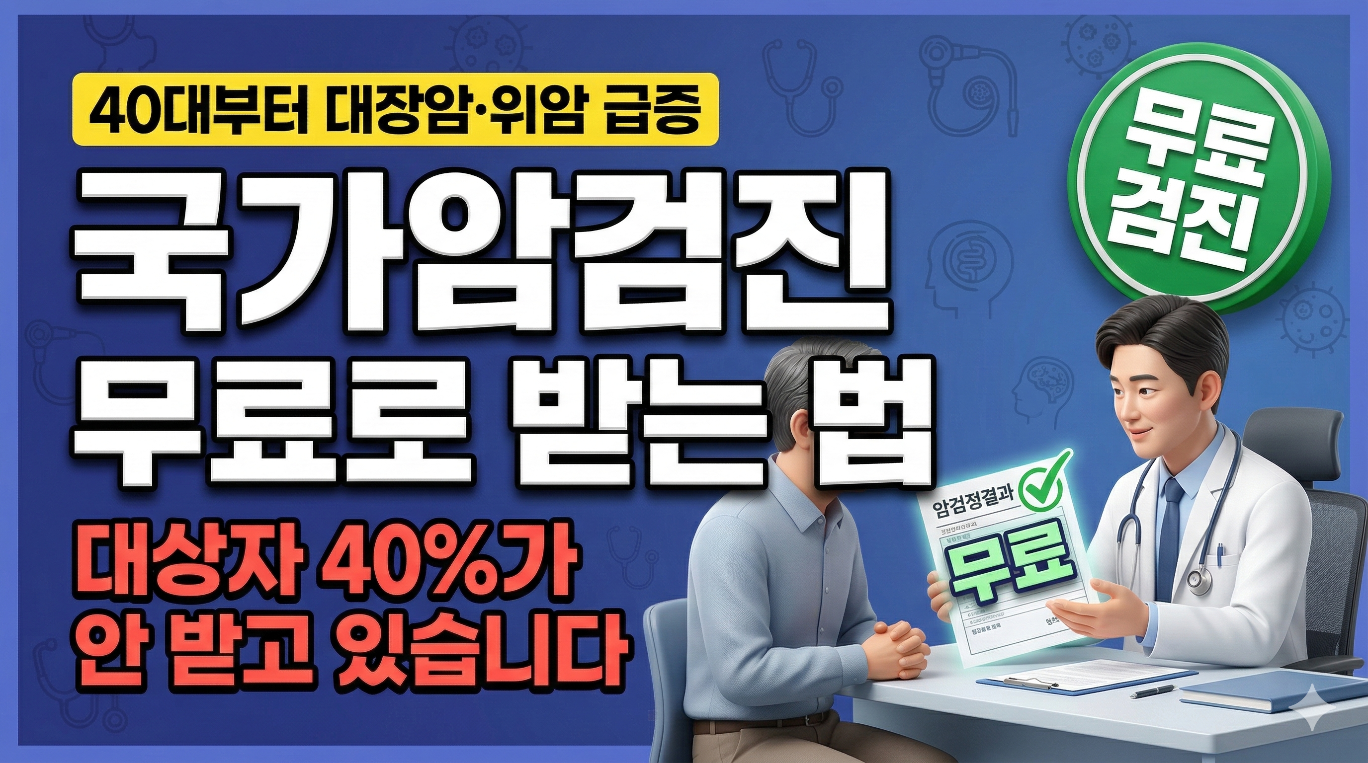 국가암검진은 매년 또는 격년으로 갱신되며, 해당 연도를 넘기면 그 해의 검진 기회는 소멸됩니다. 위암 검진은 만 40세 이상이면 지금 당장 대상자이고, 대장암 검진은 만 50세 이상이라면 올해 분변잠혈검사를 반드시 받아야 합니다. 검사 비용 걱정은 하지 않아도 됩니다. 국가가 전액 또는 대부분을 부담합니다.