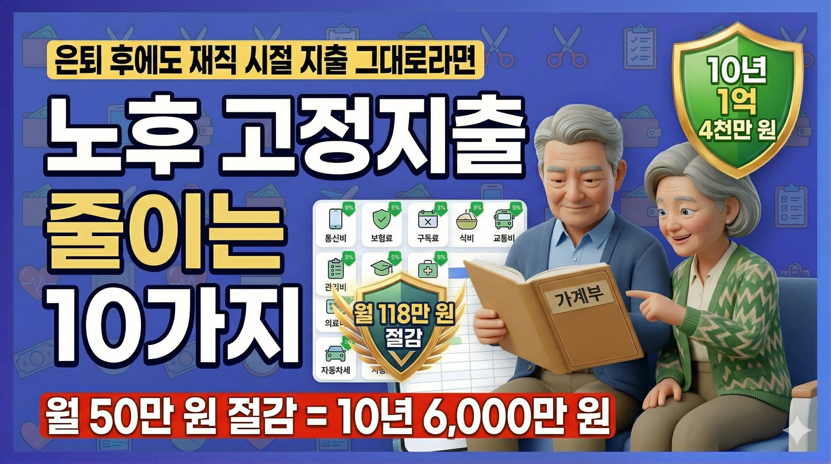 이 글에서는 은퇴 후 반드시 점검해야 할 고정 지출 10가지와 항목별 절감 전략, 실제 절감 시뮬레이션을 2026년 기준으로 정리합니다.