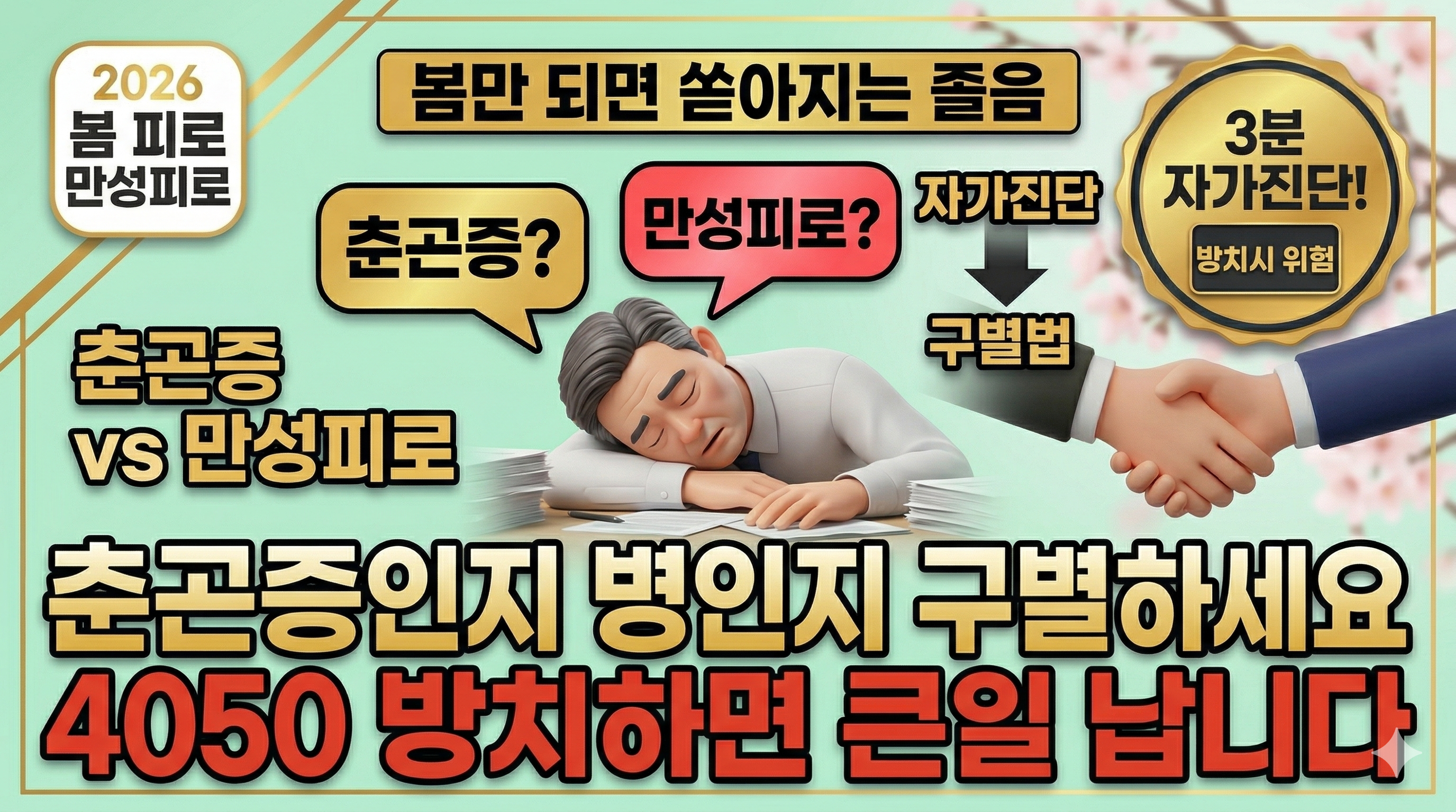 봄마다 찾아오는 극심한 졸음과 피로, 그냥 춘곤증이라고 넘기면 안 됩니다. 4050에게는 만성피로증후군·갑상선 기능 저하·우울증의 초기 신호일 수 있습니다.